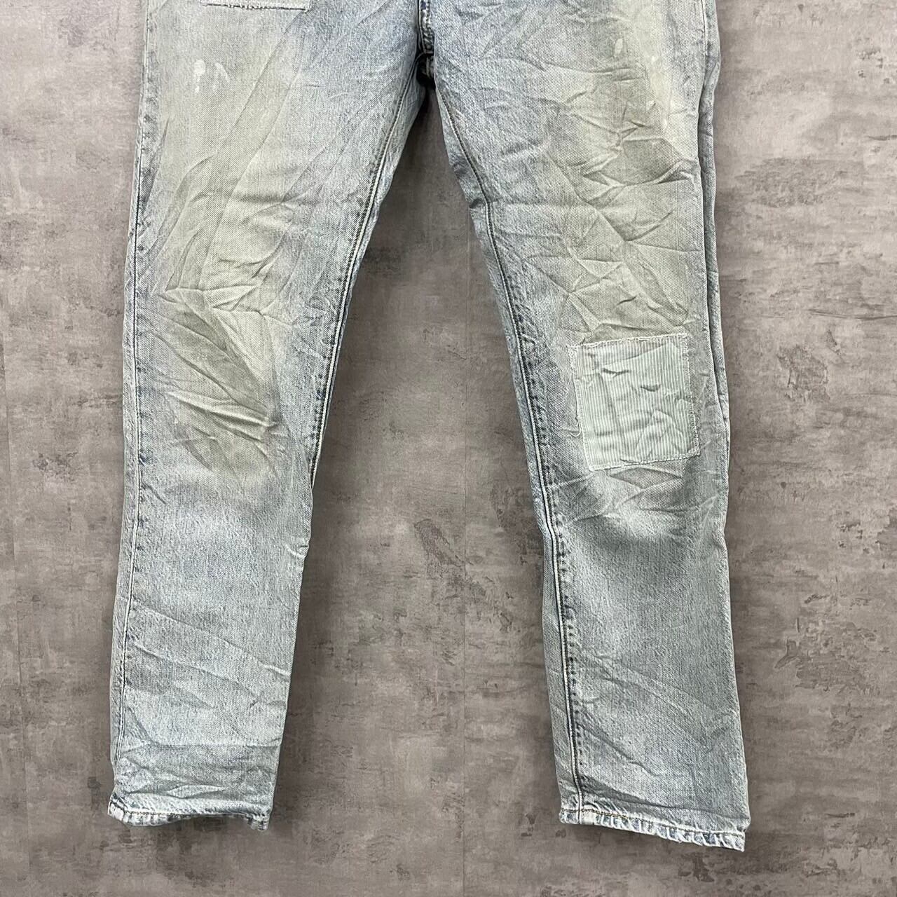 ボタンフライが特徴のシンプルなライトブルーデニムで