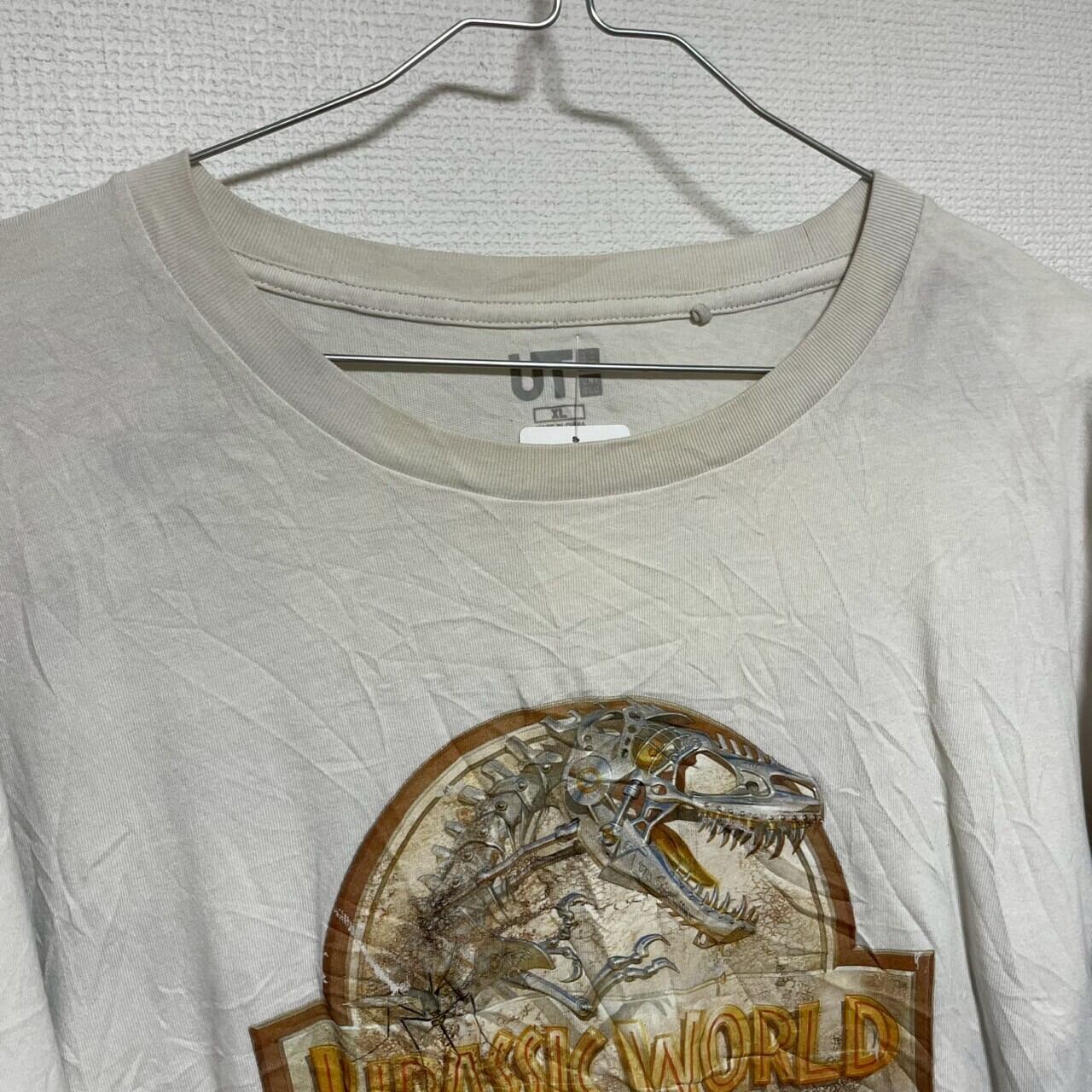 UNIQLO Tシャツ 半袖 XL ライトベージュ ビッグプリント UT ジュラシックワールド JURASSIC WORLD 恐竜 化石 メカ ユニクロ 古着 TK10986 | 古着屋Leteety
