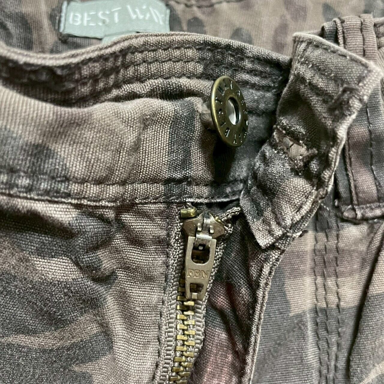 BEST WAY 迷彩 カモフラ ジップフライ カーゴパンツ キッズ 10 実寸W24in USA 海外輸入 古着 S220904-N950