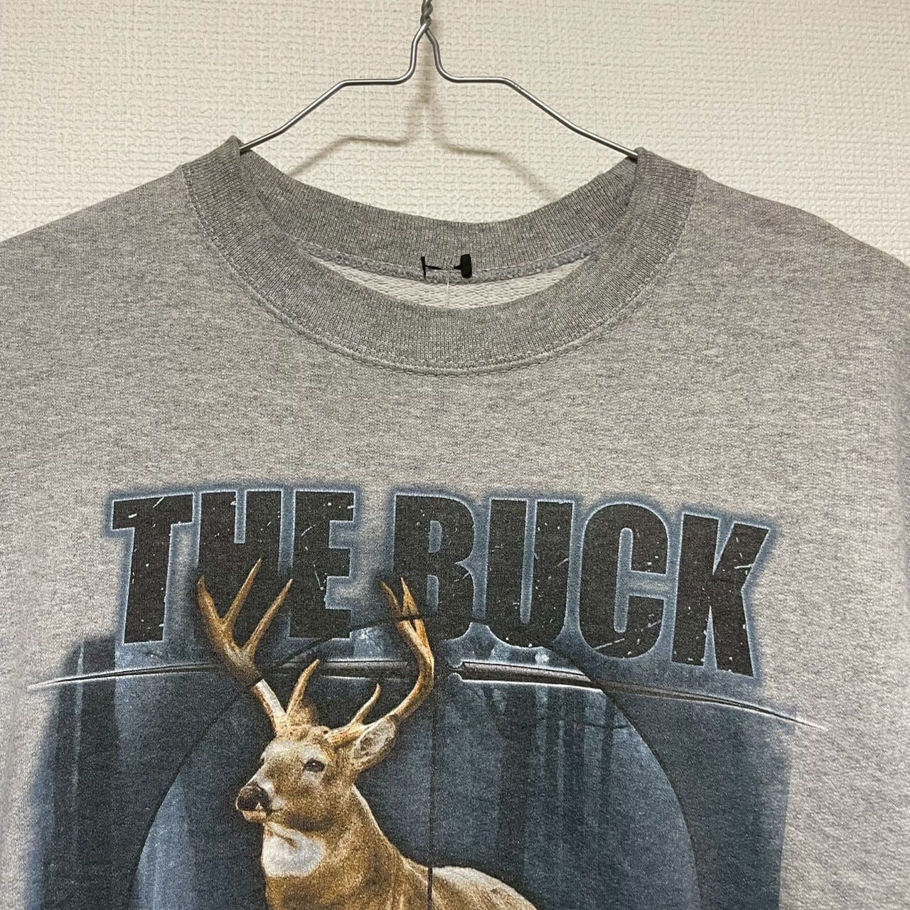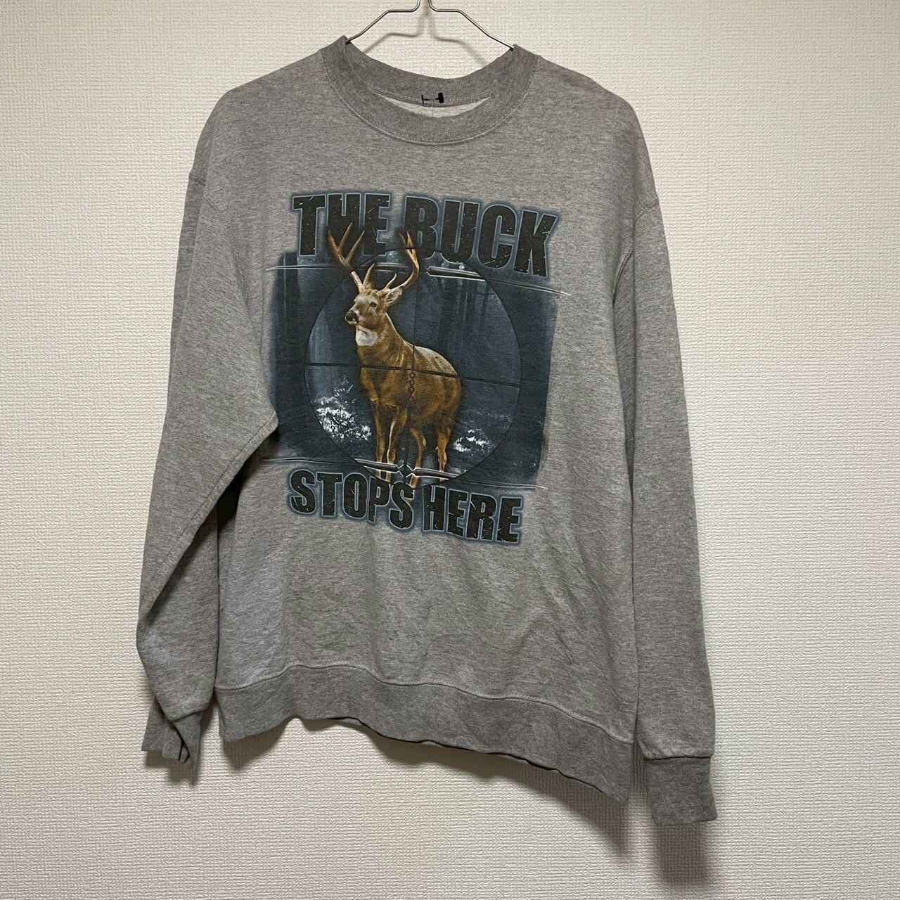 FRUIT OF THE LOOM トレーナー 長袖 M グレー スウェット ビッグプリント アニマル シカ THE BUCK STOPS HERE フルーツオブザルーム RN13765 古着 TK11775 | 古着屋Leteety