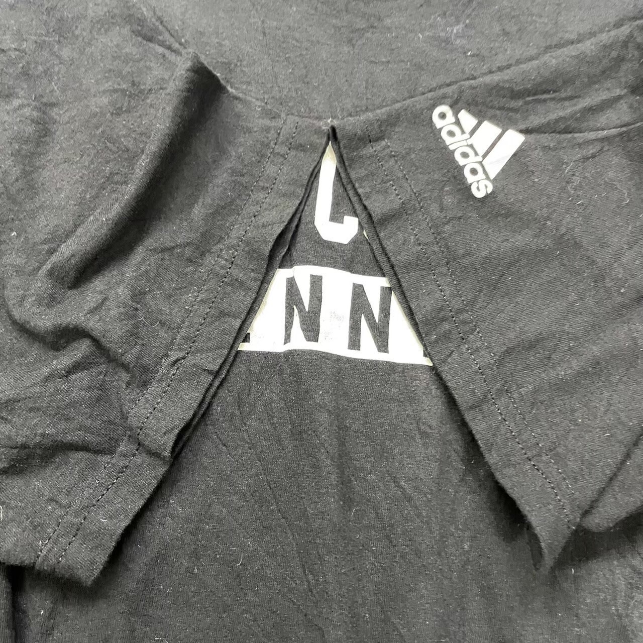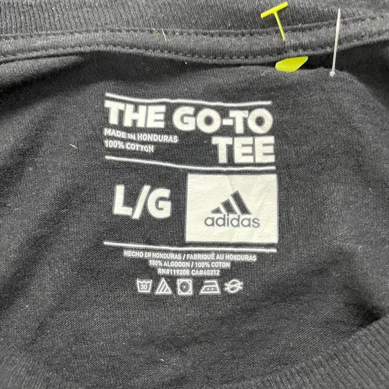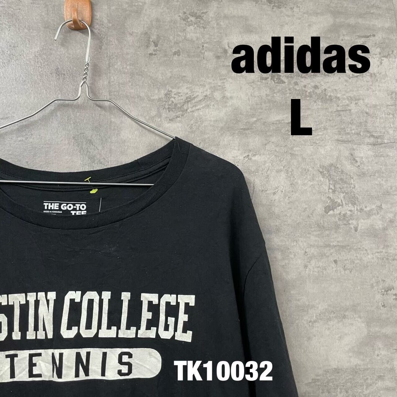 adidas アディダス ブラック Tシャツ 半袖 メンズ L 夏服 クルーネック コットン テニス Austin College RN119208 USA 古着 TK10032 | 古着屋Leteety