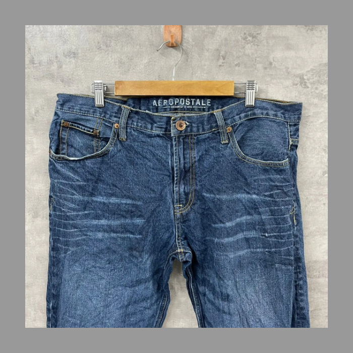 AEROPOSTALE ブルー ジップフライ デニムジーンズパンツ 36/32 実寸W37in USA 海外輸入 古着 SK10617