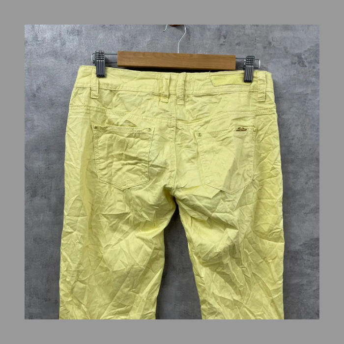JEANIFUL イエロー ジップフライ カラーパンツ 春夏 レディース 38 実寸W30in USA 海外輸入 古着 SK10622