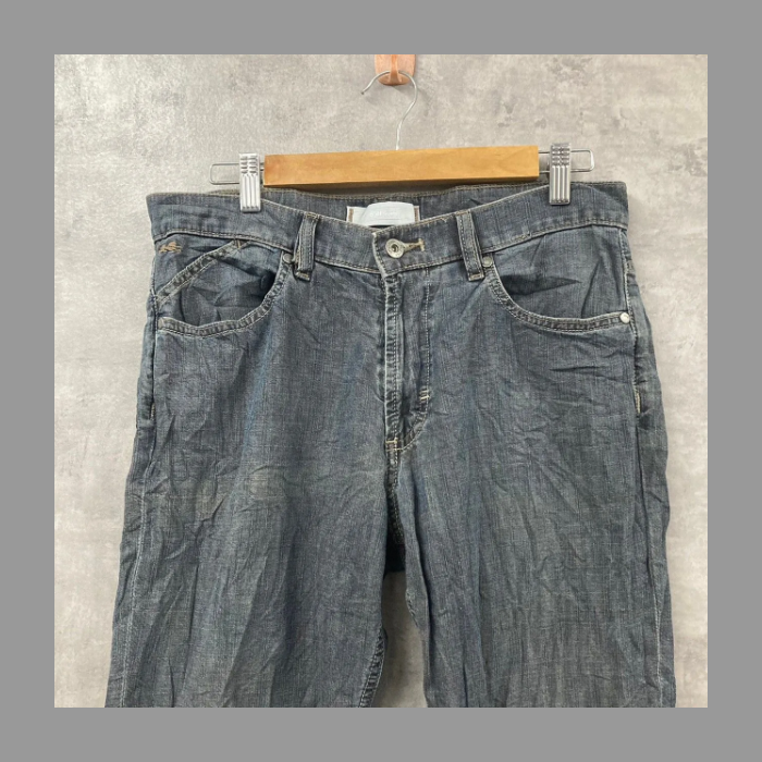 BSH Jeans ブルー ジップフライ デニムジーンズ 薄手 春夏 42 33L 実寸W31in USA 海外輸入 古着 SK10703