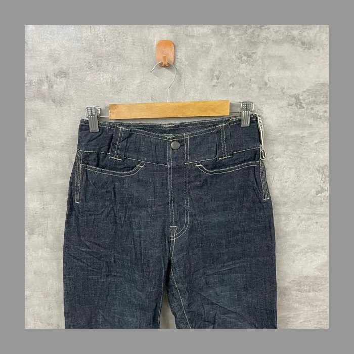 INTERFASHION CO インディゴブルー フレア ジップフライ デニムジーンズパンツ レディース USA27 実寸W27in 01469 USA 海外輸入 古着 SK10763
