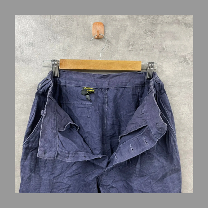 Cotton Lines by AL ネイビー ボタンフライ ワークパンツ レディース ウエストゴム 46 実寸W27in ボトムス ズボン USA 海外輸入 古着 SK10722