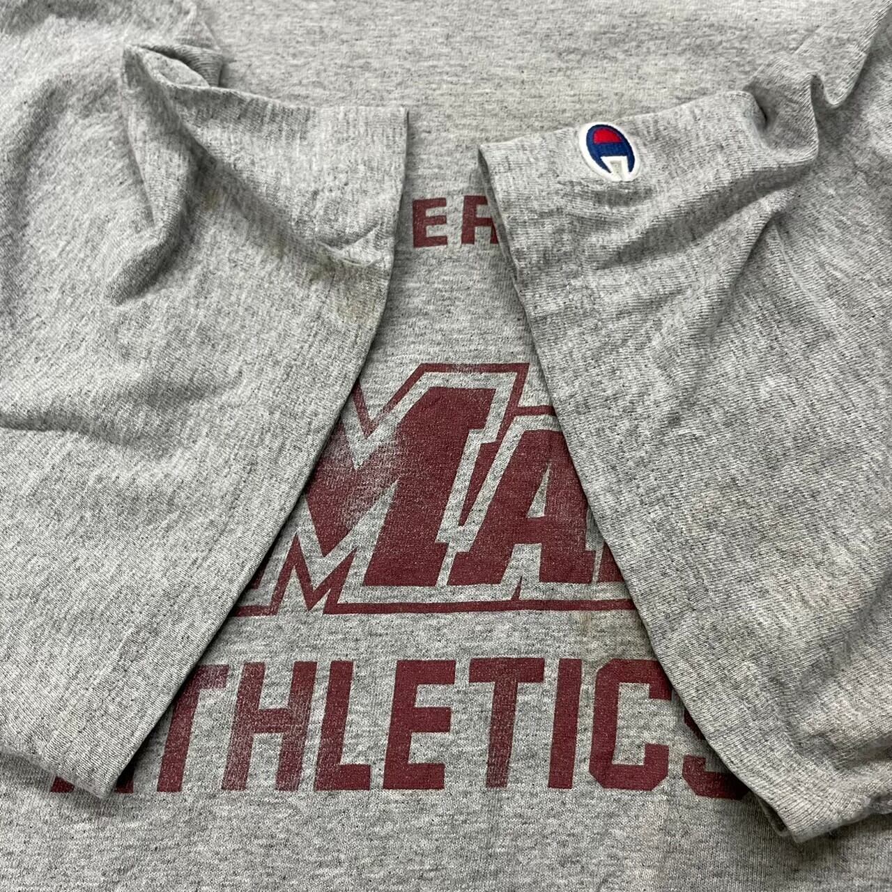 Champion チャンピオン グレー Tシャツ 半袖 クルーネック メンズ XL ビッグロゴ プリントデザイン 袖ロゴ USA 海外輸入 古着 TK10210