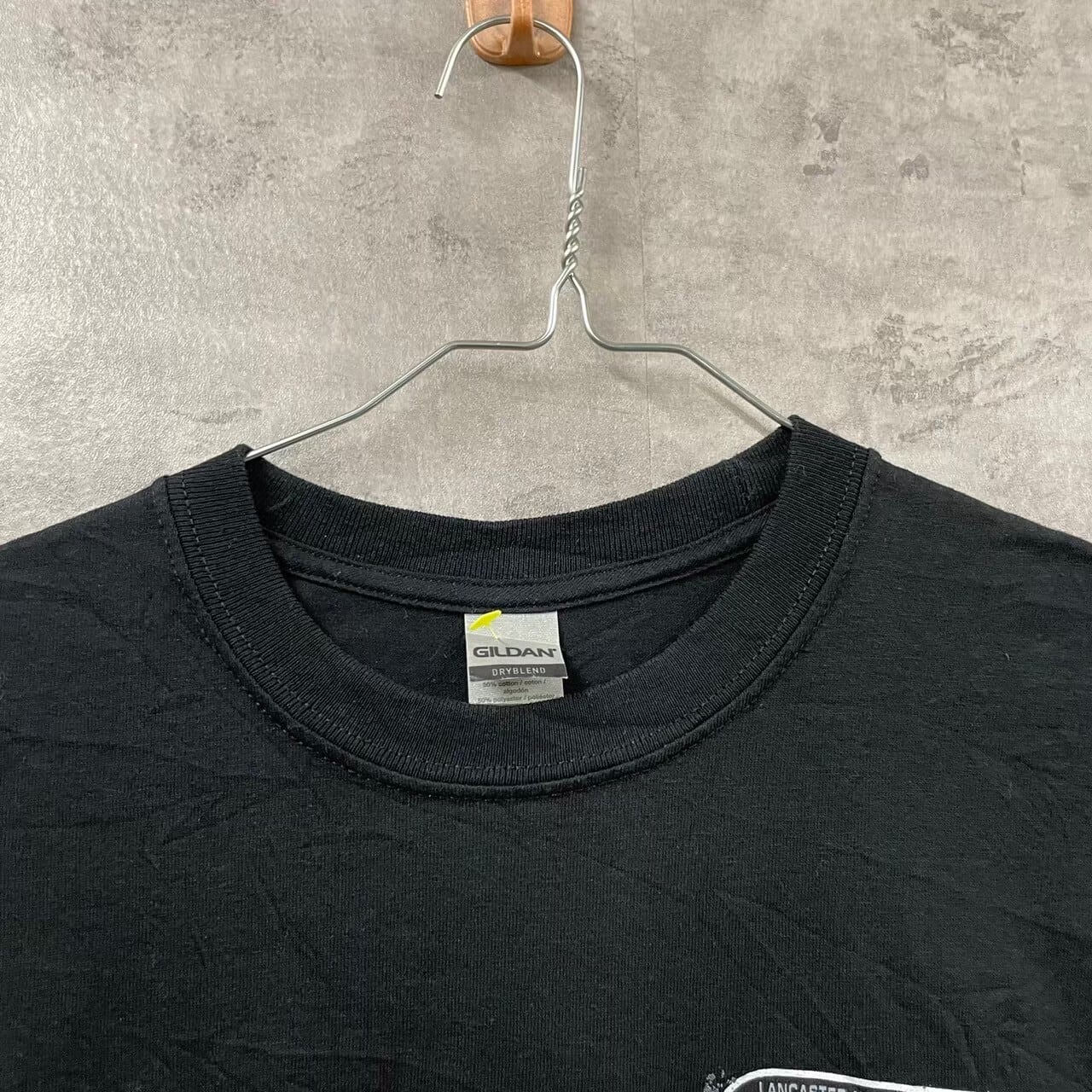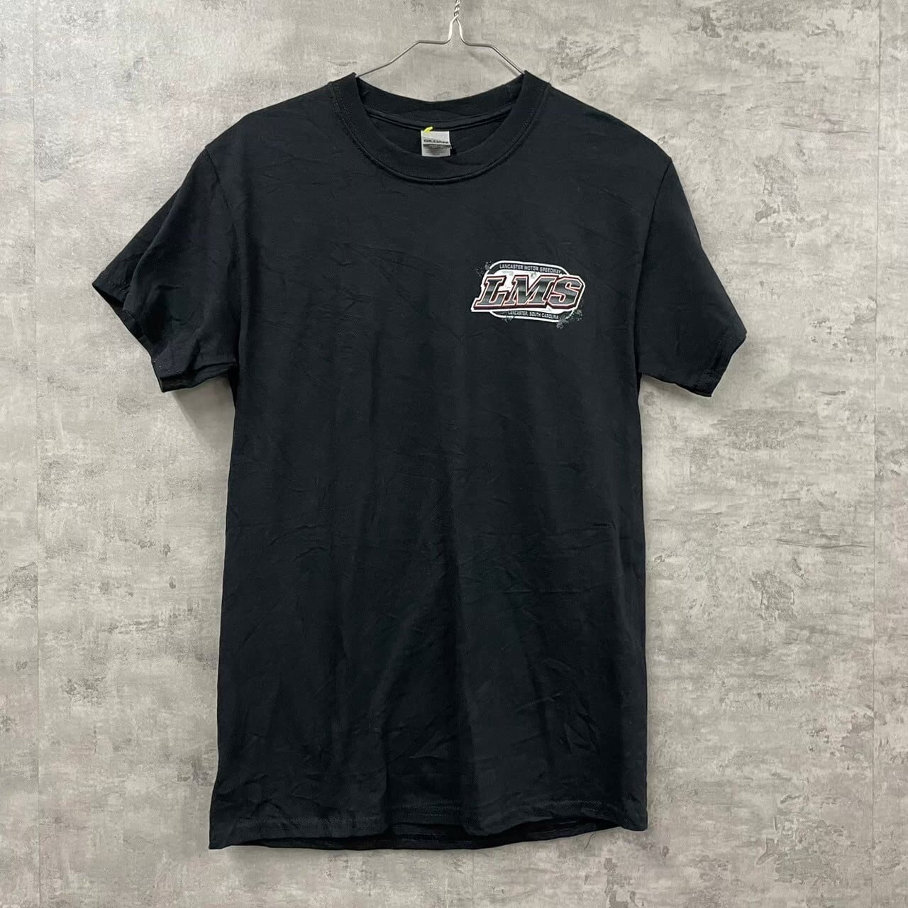 GILDAN ギルダン Tシャツ 半袖 ブラック S メンズ 夏服 クルーネック コットン LMS カーレース レーシング ビッグプリント 古着 TK10196