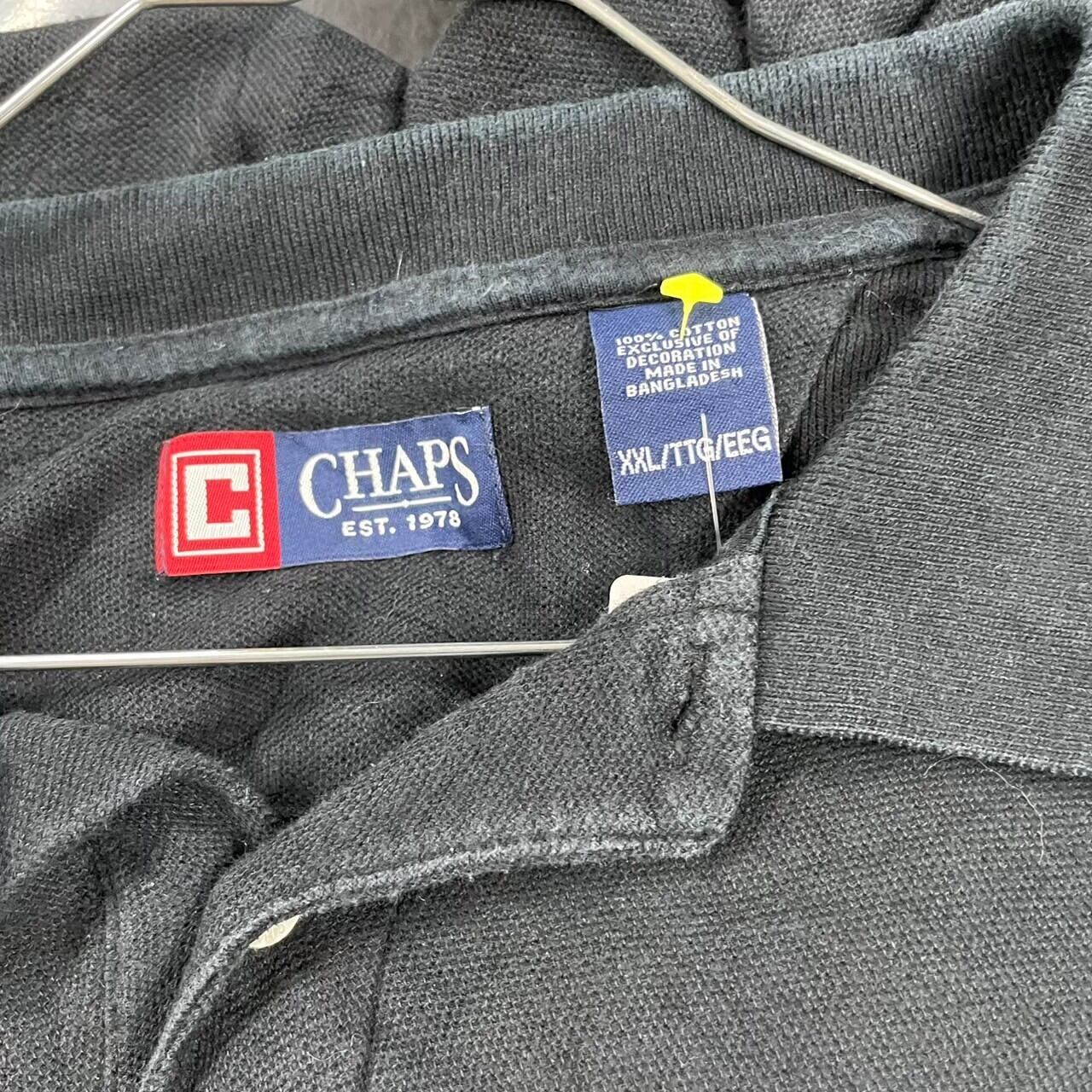 CHAPS チャップス ブラック ポロシャツ 半袖 メンズ XXL 夏服 無地 刺繍ロゴ ポイントロゴ USA 海外輸入 古着 TK10173