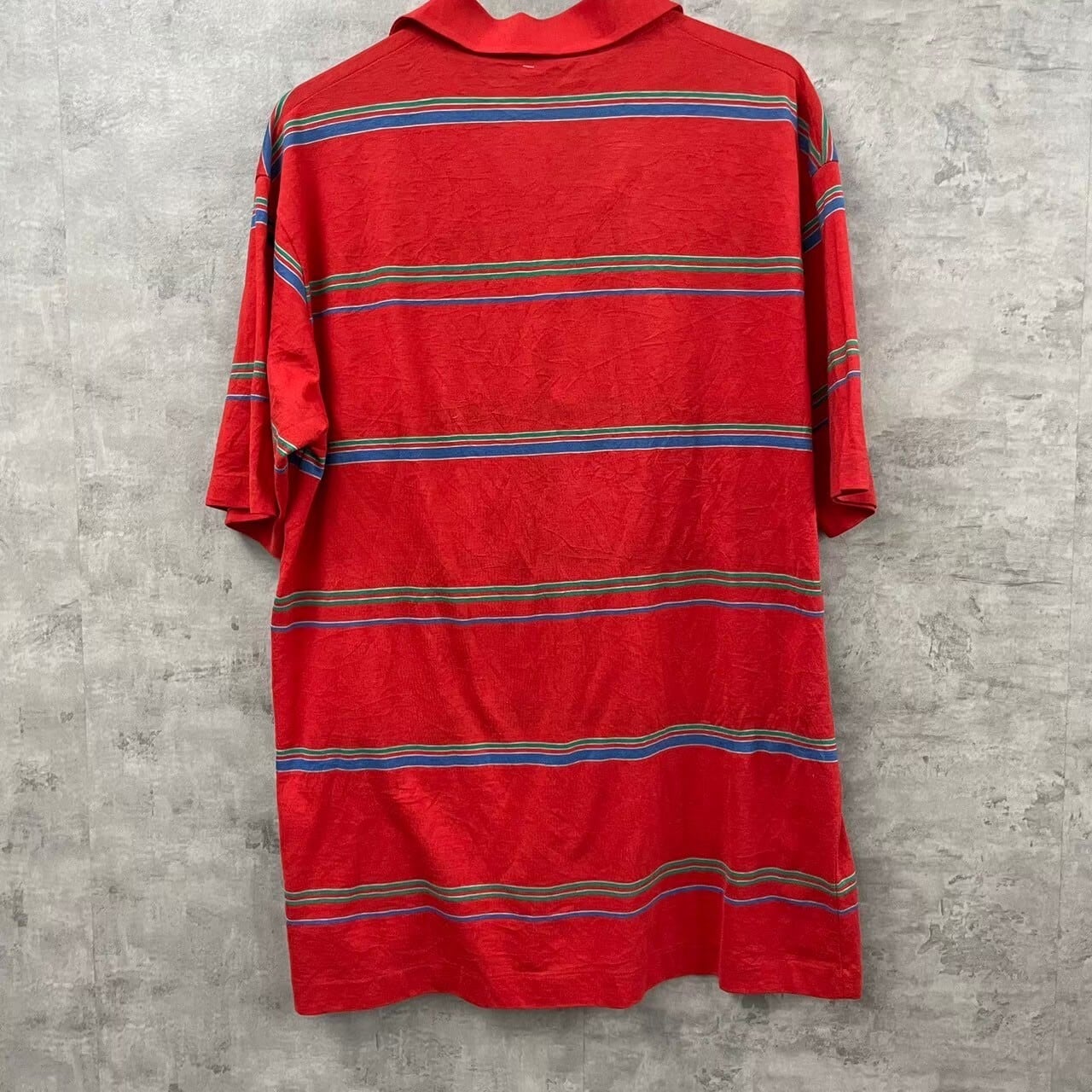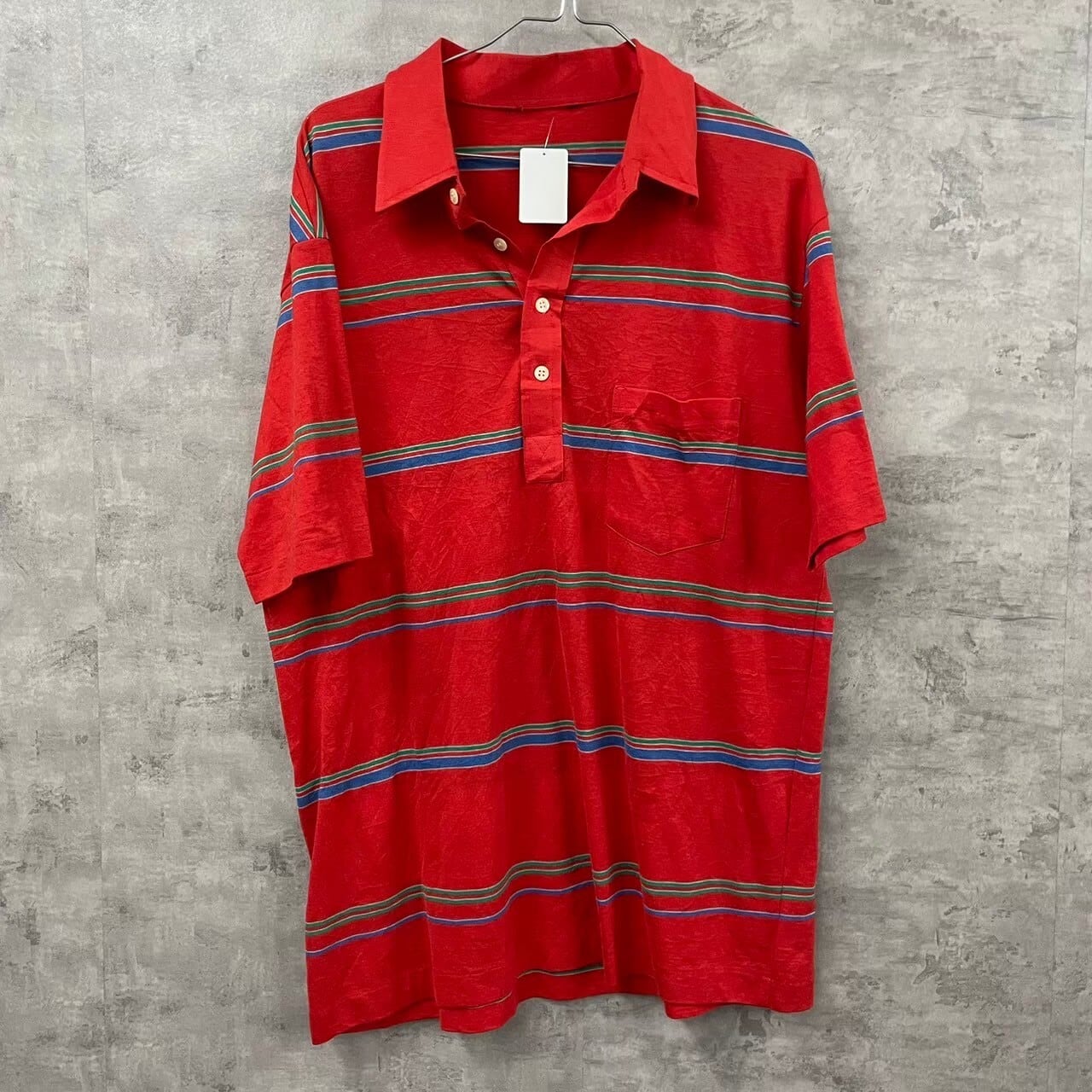 MEN's レッド ポロシャツ 半袖 メンズ M 夏服 ボーダー 胸ポケット ボタン RN36543 USA 海外輸入 古着 TK10169