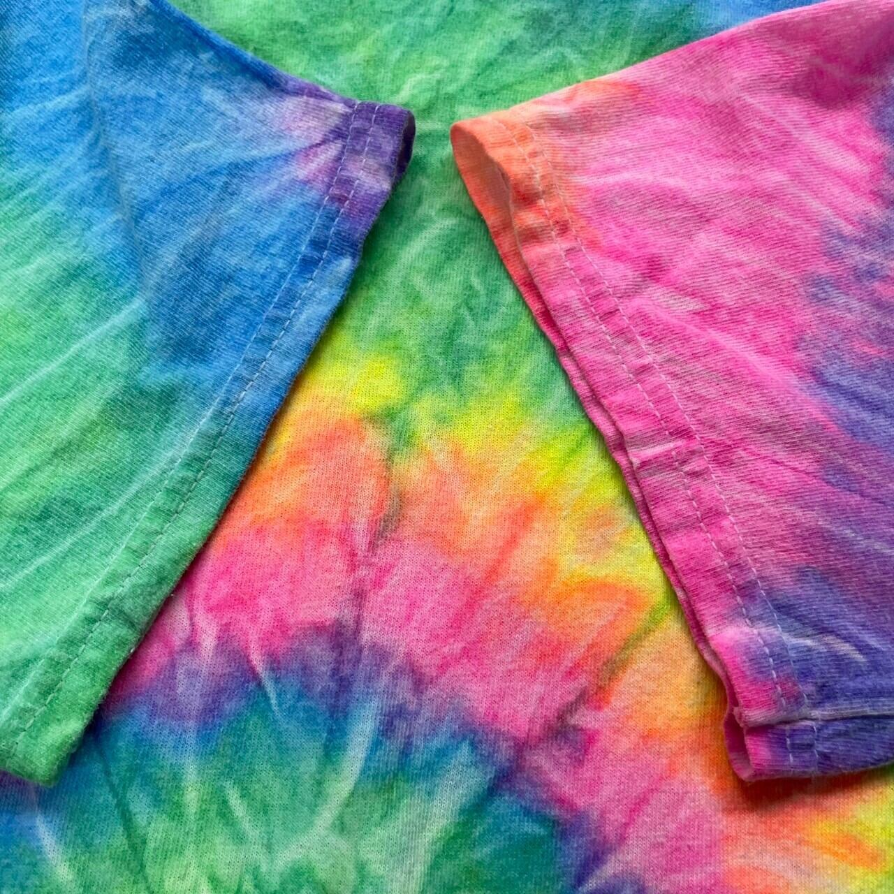 colortone カラートーン カラフル Tシャツ 半袖 クルーネック メンズ S 絞り タイダイ ネオン バックプリント 古着 TK10256
