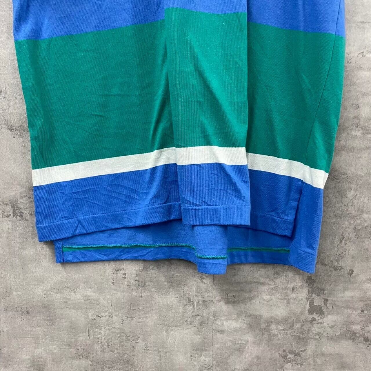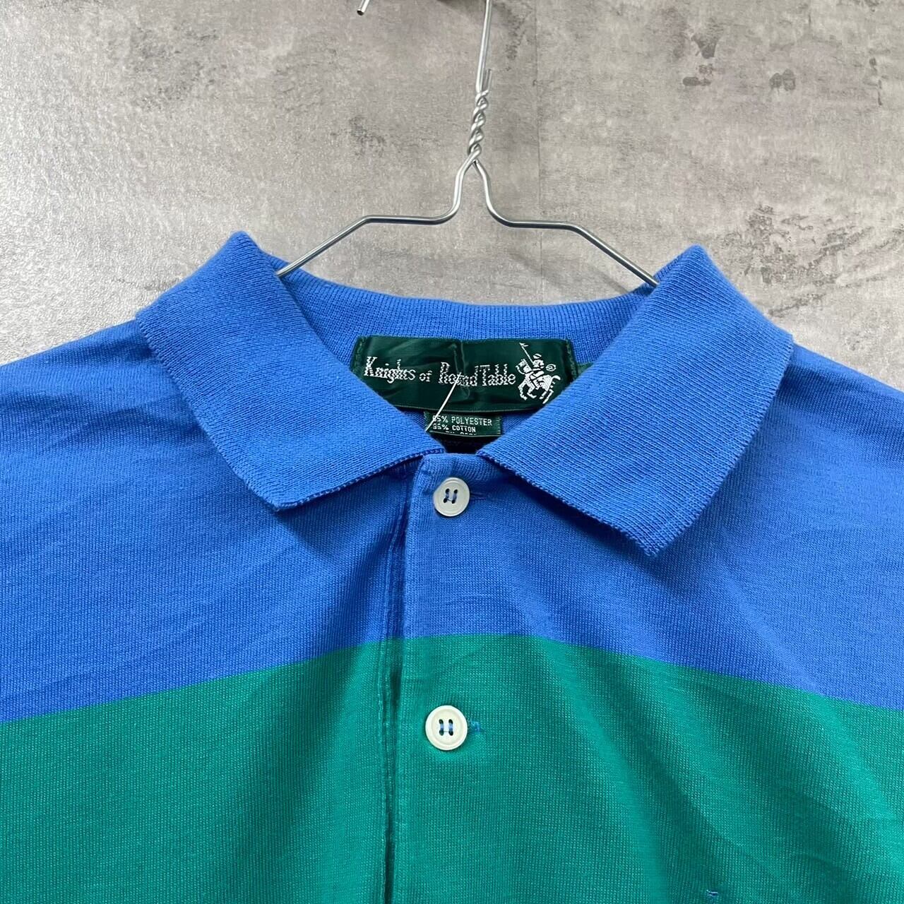 Knights of Round Table ポロシャツ 半袖 グリーン ブルー ボーダー マルチカラー M メンズ ワンポイント ロゴ コットン RN63720 刺繍 USA 古着 TK10230