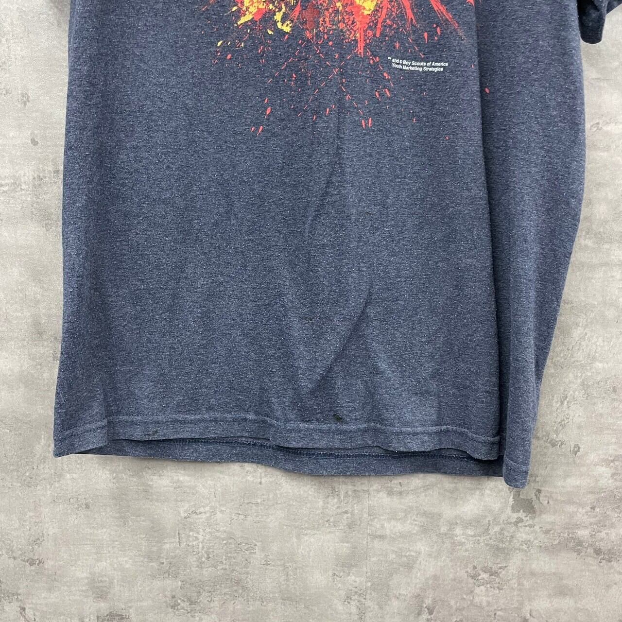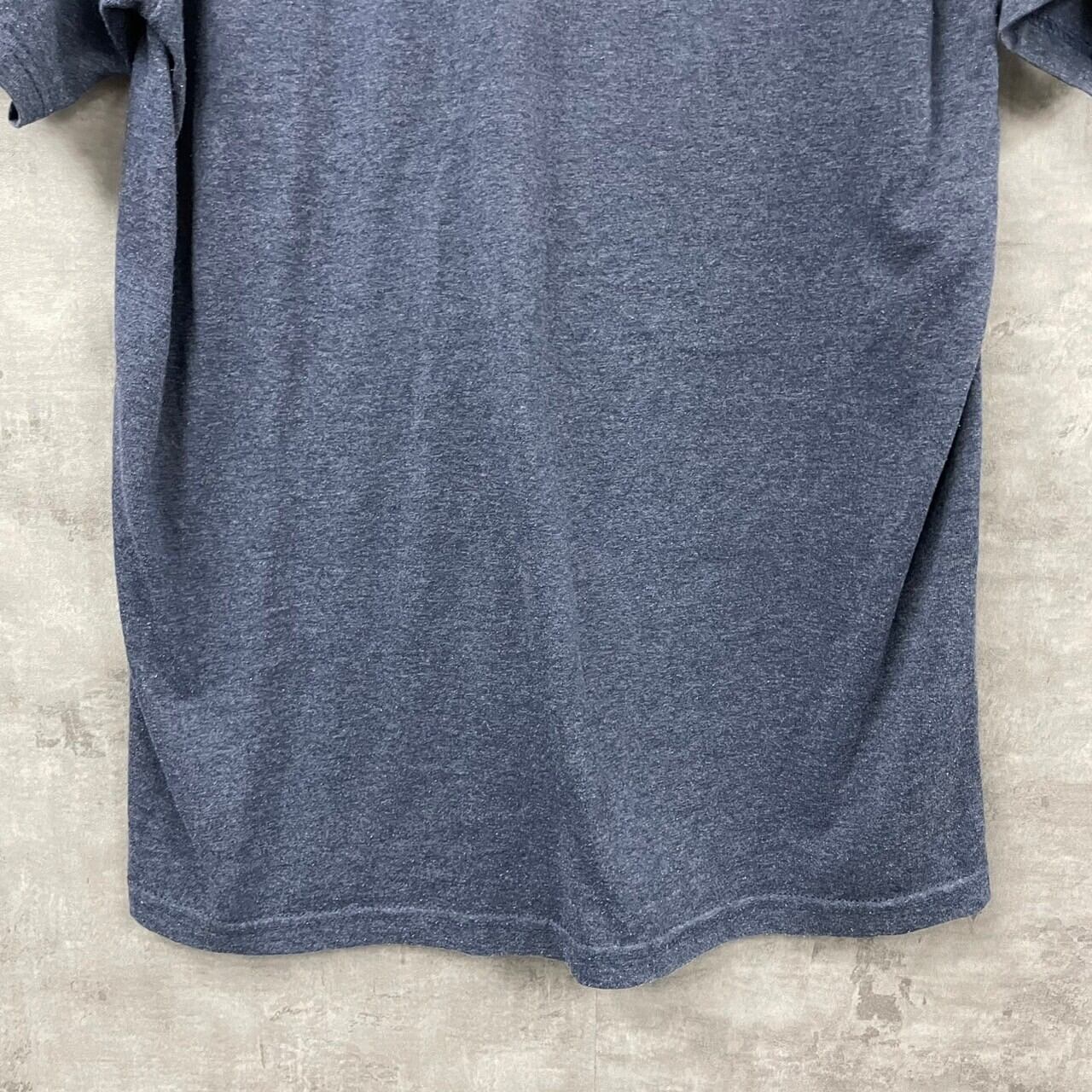 PORT & COMPANY ポートアンドカンパニー Tシャツ 半袖 ネイビー メンズ コットン クルーネック ビッグプリント ワッペン キャンプ ハイ シエラ キャラクター USA 海外輸入 古着 TK10297