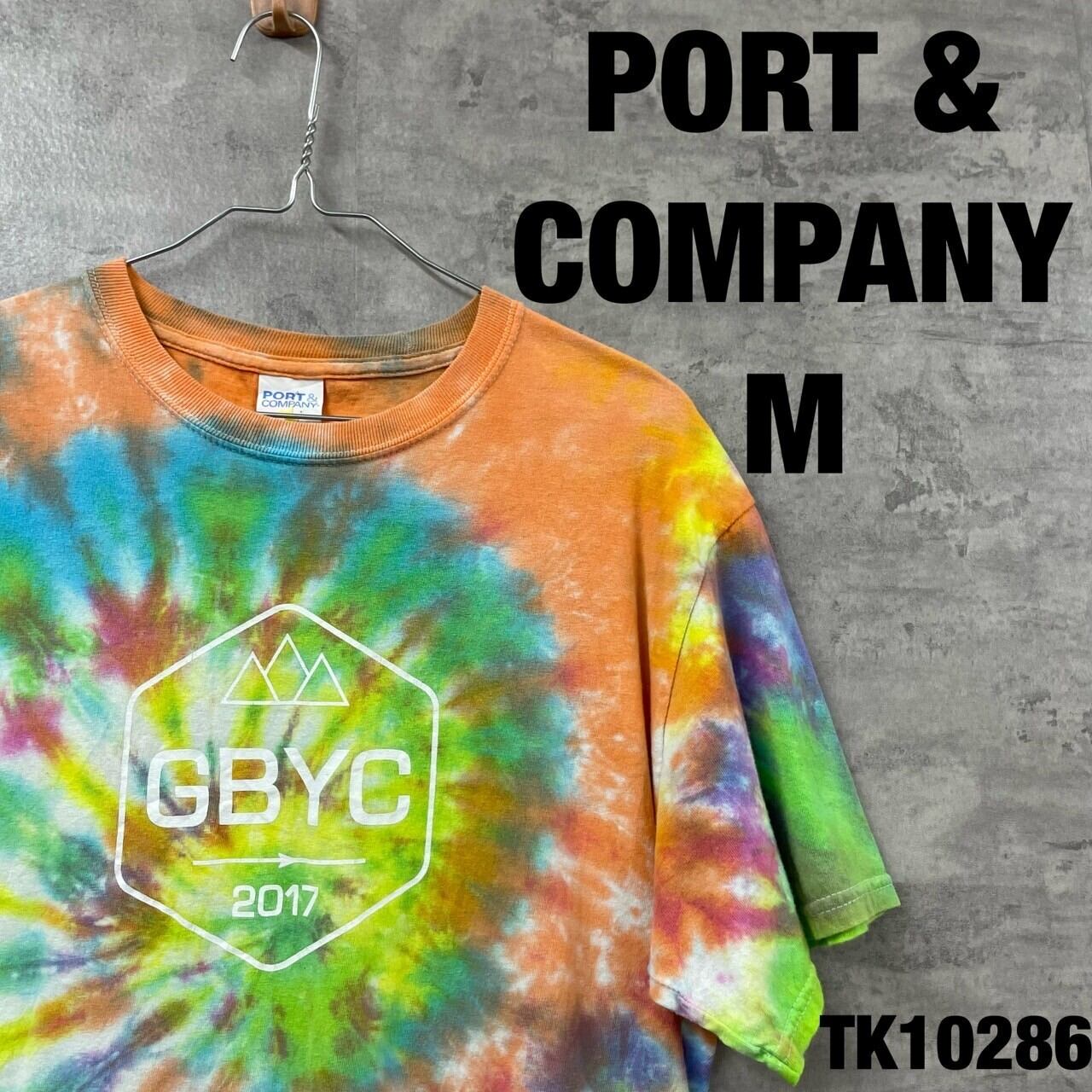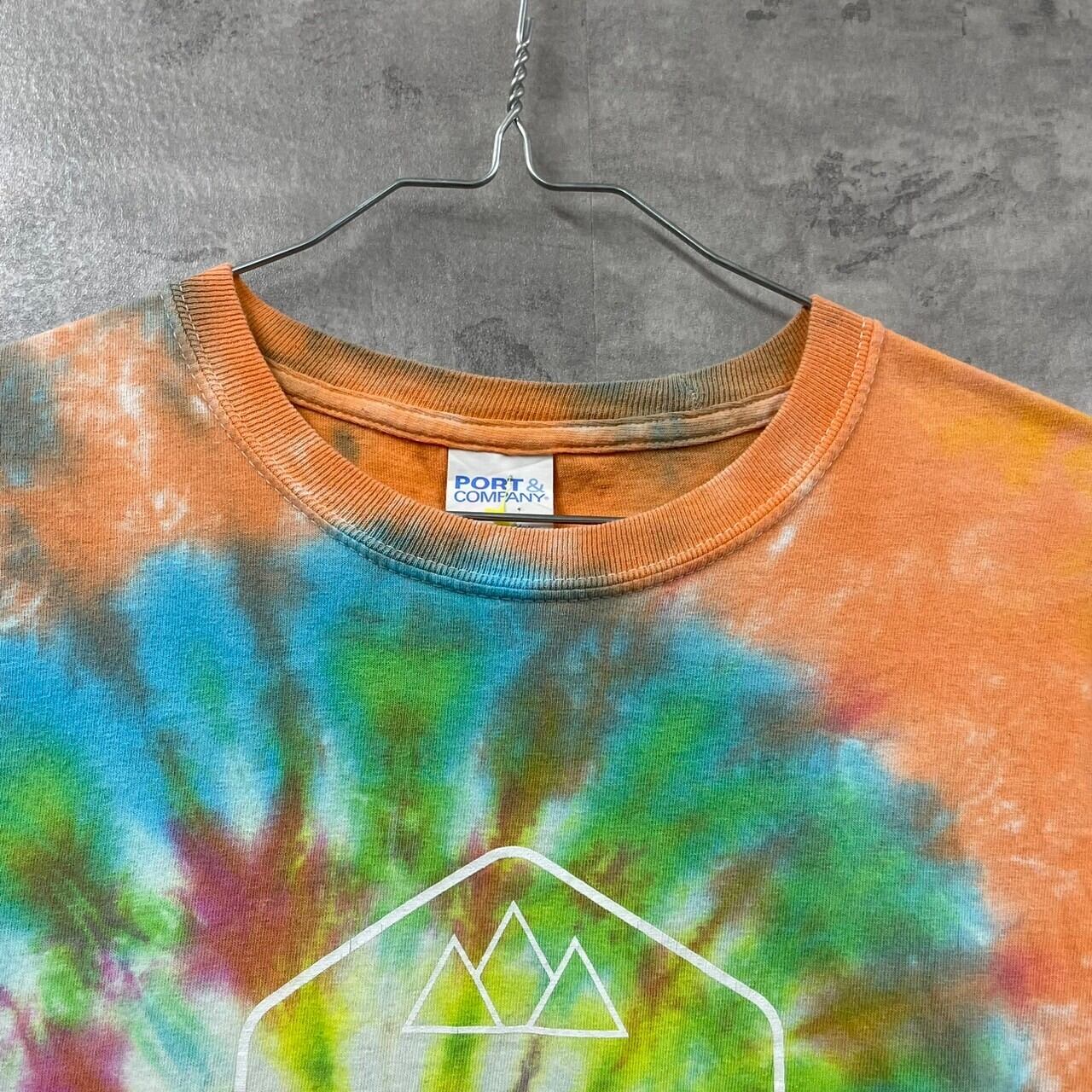 PORT & COMPANY ポートアンドカンパニー Tシャツ 半袖 タイダイ カラフル オレンジ グリーン M メンズ コットン クルーネック ビッグプリント GBYC 2017 RN90836 USA 海外輸入 古着 TK10286