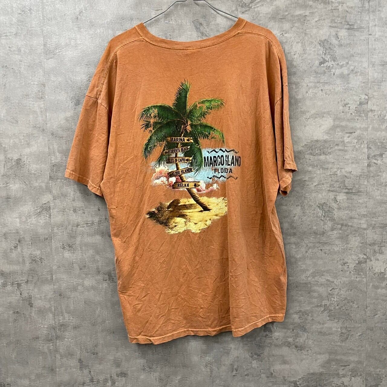 GILDAN ギルダン Tシャツ 半袖 XL メンズ コットン クルーネック 夏服 背面プリント フロリダ ヤシの木 RN93846 USA 海外輸入 古着 TK10273