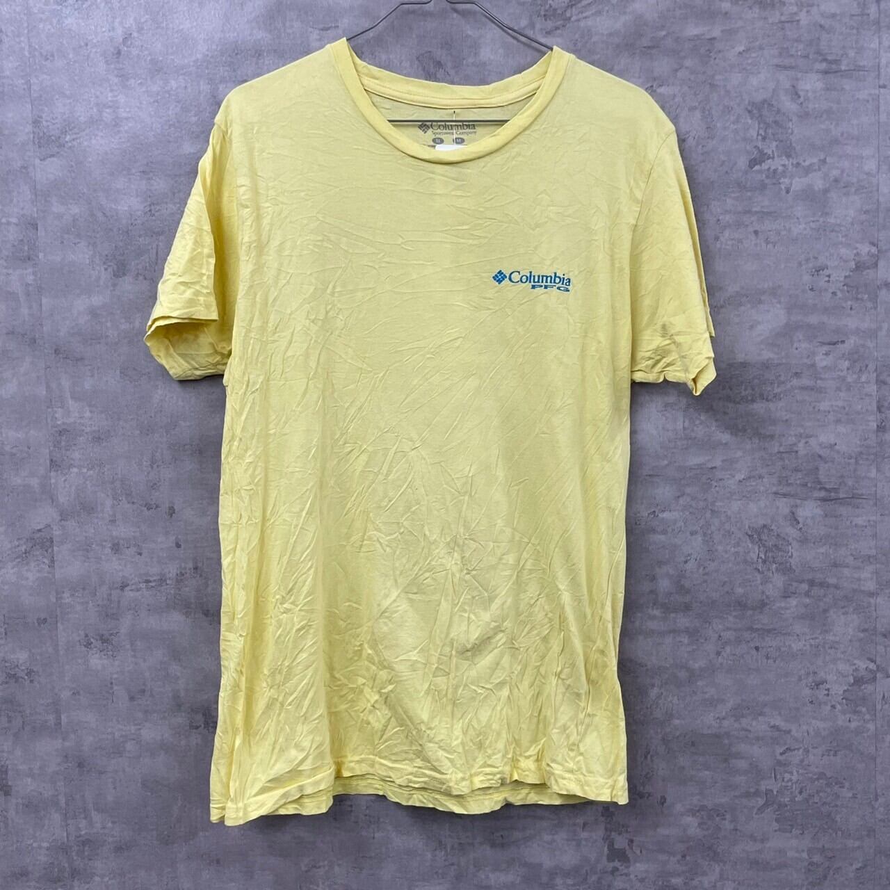 Columbia コロンビア イエロー Tシャツ 半袖 M メンズ コットン クルーネック PFG 背面プリント RN69724 USA 海外輸入 古着 TK10380