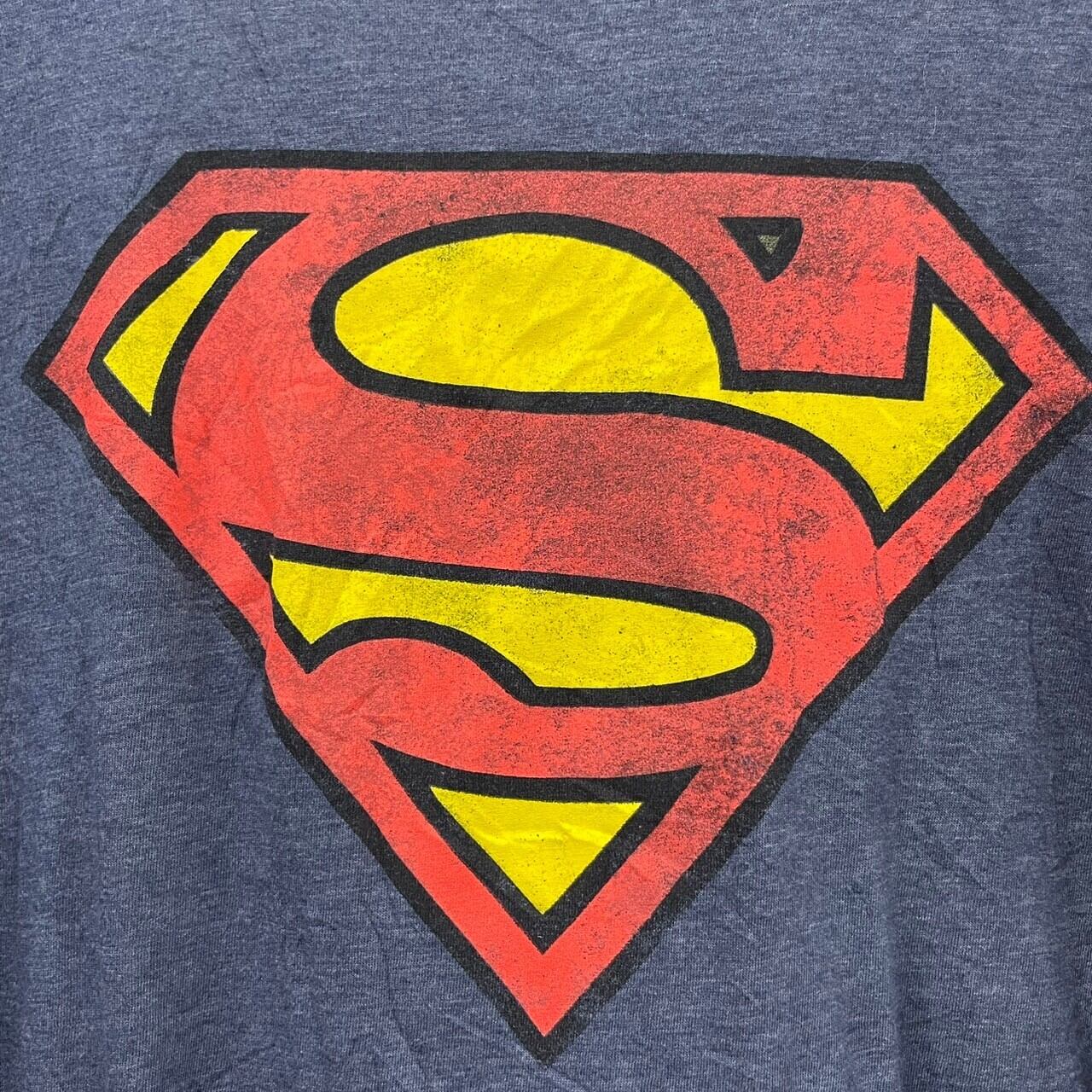 Superman スーパーマン ネイビー Tシャツ 半袖 2XL メンズ コットン クルーネック ビッグプリント ヒーロー キャラクター RN115685 USA 海外輸入 古着 TK10346