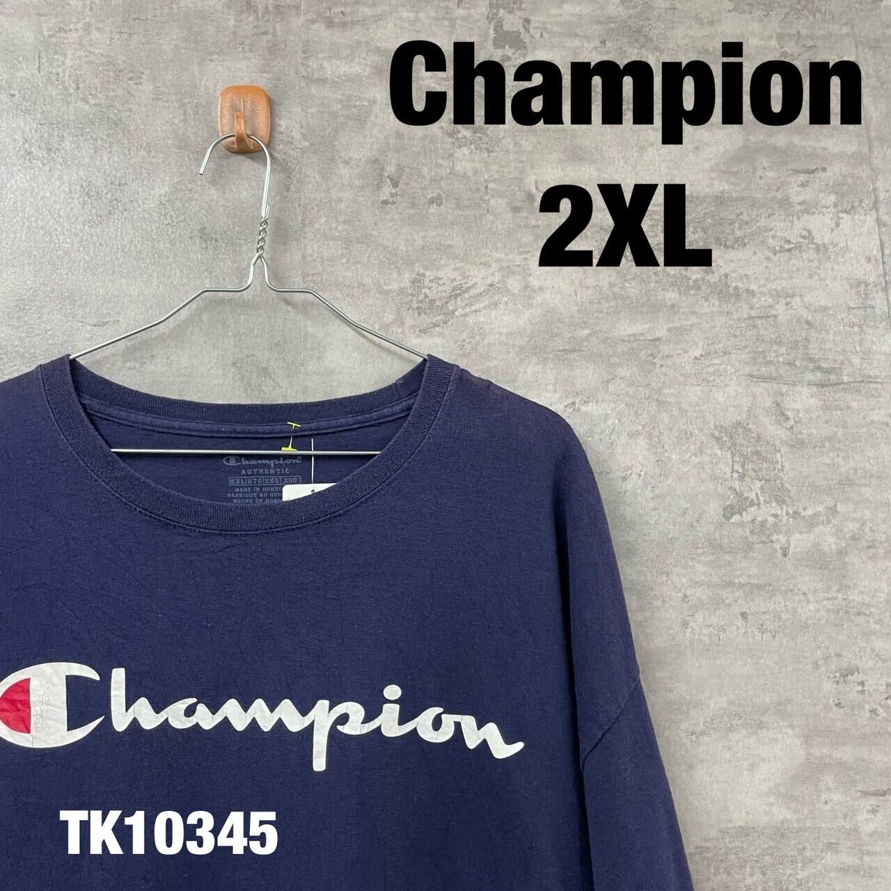 Champion チャンピオン ネイビー Tシャツ 半袖 2XL メンズ コットン クルーネック ビッグロゴ 大きいサイズ RN15763 USA 海外輸入 古着 TK10345