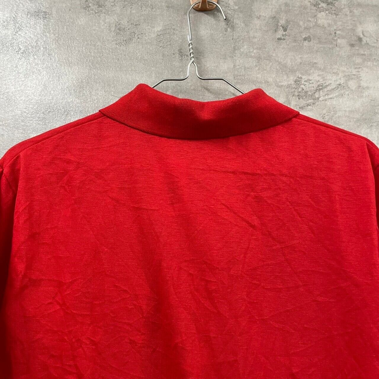 Screen Mates USA製 ポロシャツ レッド 半袖 メンズ S 無地 刺繍デザイン 袖ゴム 古着 TK10424