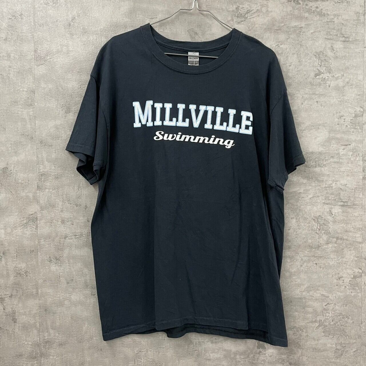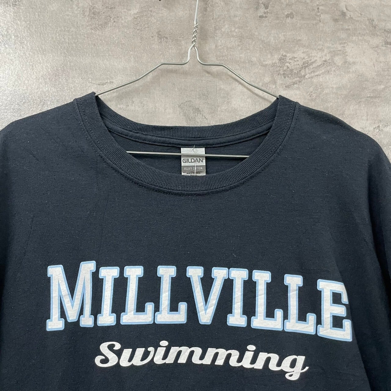 GILDAN ギルダン Tシャツ ダークネイビー 半袖 クルーネック メンズ L プリントデザイン ロゴ HEAVY COTTON USA 海外輸入 古着 TK10438