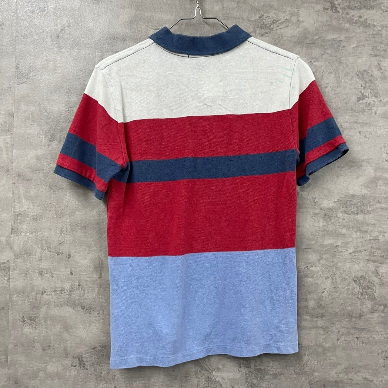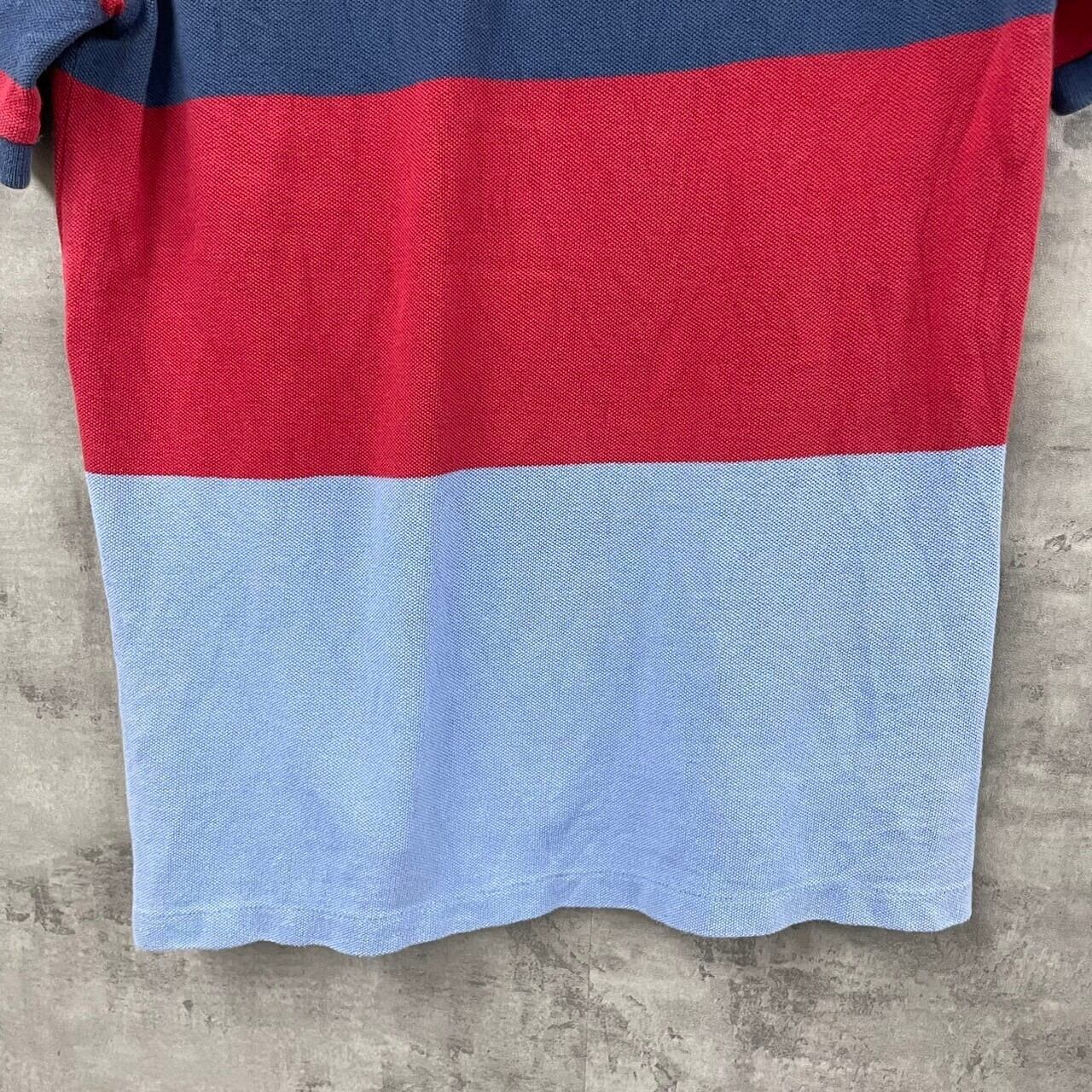 POLO RALPH LAUREN ポロラルフローレン ポロシャツ レッド 半袖 キッズ M(10-12) ボーダー 刺繍ロゴ USA 海外輸入 古着 TK10423