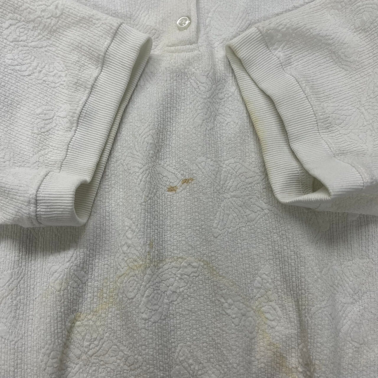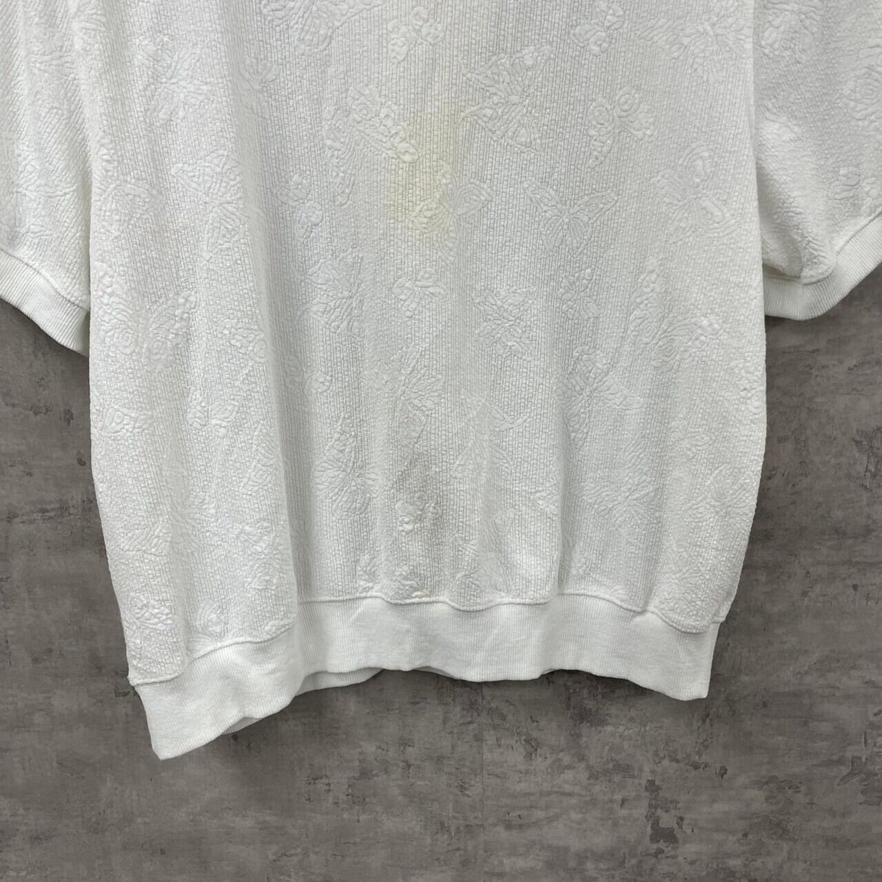 alfred dunner アルフレッドダナー ポロシャツ ホワイト 半袖 レディース L 肩パッド 総柄 蝶々 裾ゴム USA 海外輸入 古着 TK10417