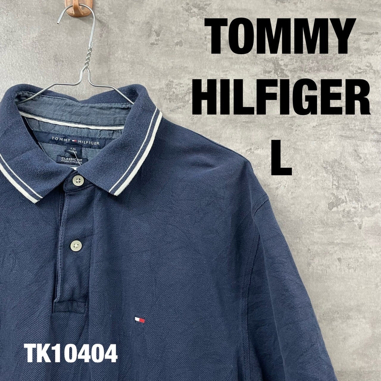TOMMY HILFIGER トミーヒルフィガー ネイビー ポロシャツ 半袖 L メンズ コットン 刺繍ロゴ クラシック RN77806 USA 海外輸入 古着 TK10404